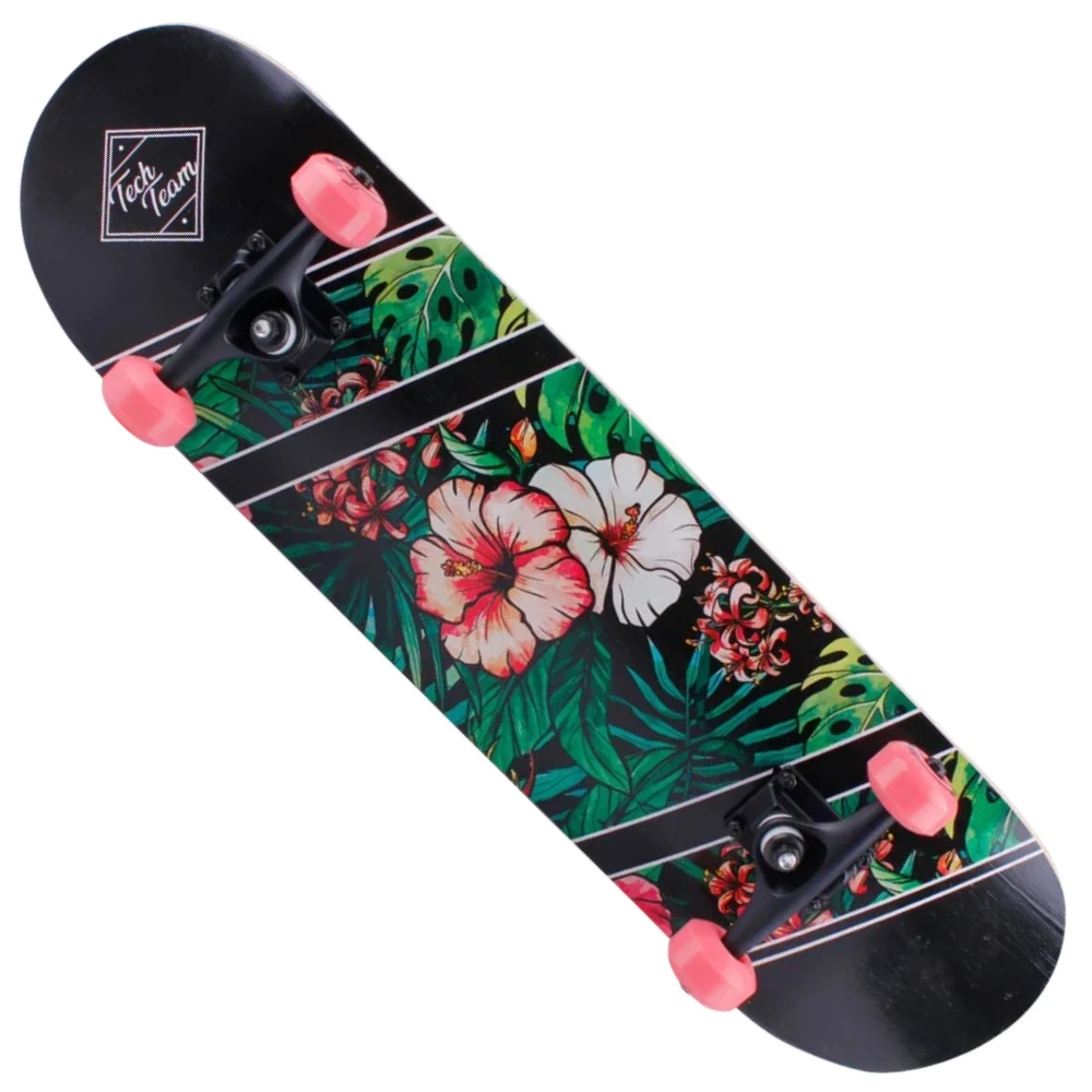 ДЕРЕВЯННЫЙ СКЕЙТБОРД TECH TEAM X-GAME цветы стал хитом этого сезона и лидером продаж. Модель создана для новичков подростков и старшего поколения весом до 80 кг. Технические характеристики скейта превзошли ожидания. Производитель постарался над производством, учел ошибки предыдущей модели и пожелания райдеров-профессионалов.