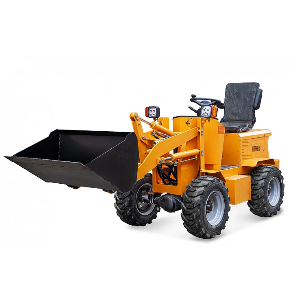 Особенностью этого погрузчика является наличие ковша, что делает его еще более универсальным и практичным в использовании. Ковш позволяет перевозить различные материалы, такие как песок, гравий или строительный мусор.