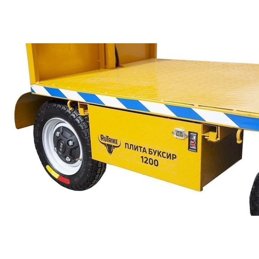 Электроплатформа RuTrike ПЛИТА БУКСИР 1200 – новинка грузовой маневренной техники понравилась руководителям предприятий и предпринимателям, деятельность которых связана с погрузочно-разгрузочными работами. Электроплатформа, произведенной в ярко-желтой цветовой гамме, обрамленная специализированными полосами убеждают, что работы проводятся серьезной компанией, знающей цену собственному времени.