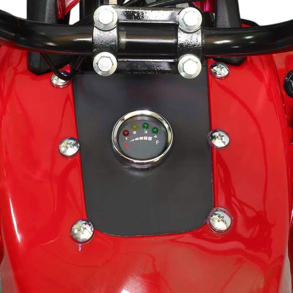У GreenCamel Caxapa A1520 два вида батарей, можно приобрести квадроцикл с штатной батарей 20 Аh SLA GEL, у которой запас хода 40 км. Ресурс 20 тыс. Км, время зарядки 8 часов. В комплектации есть более мощная батарея 42 Аh Boston, запас хода 80 км. Ресурс батареи 100 тыс. Км, время заряда 16 ч. У квадроцикла отсутствует спидометр, и шнур безопасности на руле.