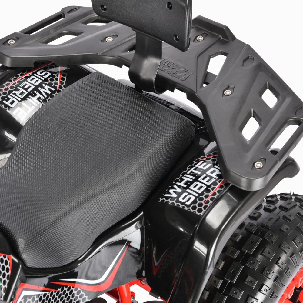 Первое, что бросается при знакомстве с квадрациклом – вездеходные колеса, большие, с глубокими протекторами. Кажется, для них не существует препятствий. Широкое вместительное сиденье, мощный бампер и решетка, напоминающая багажник.
