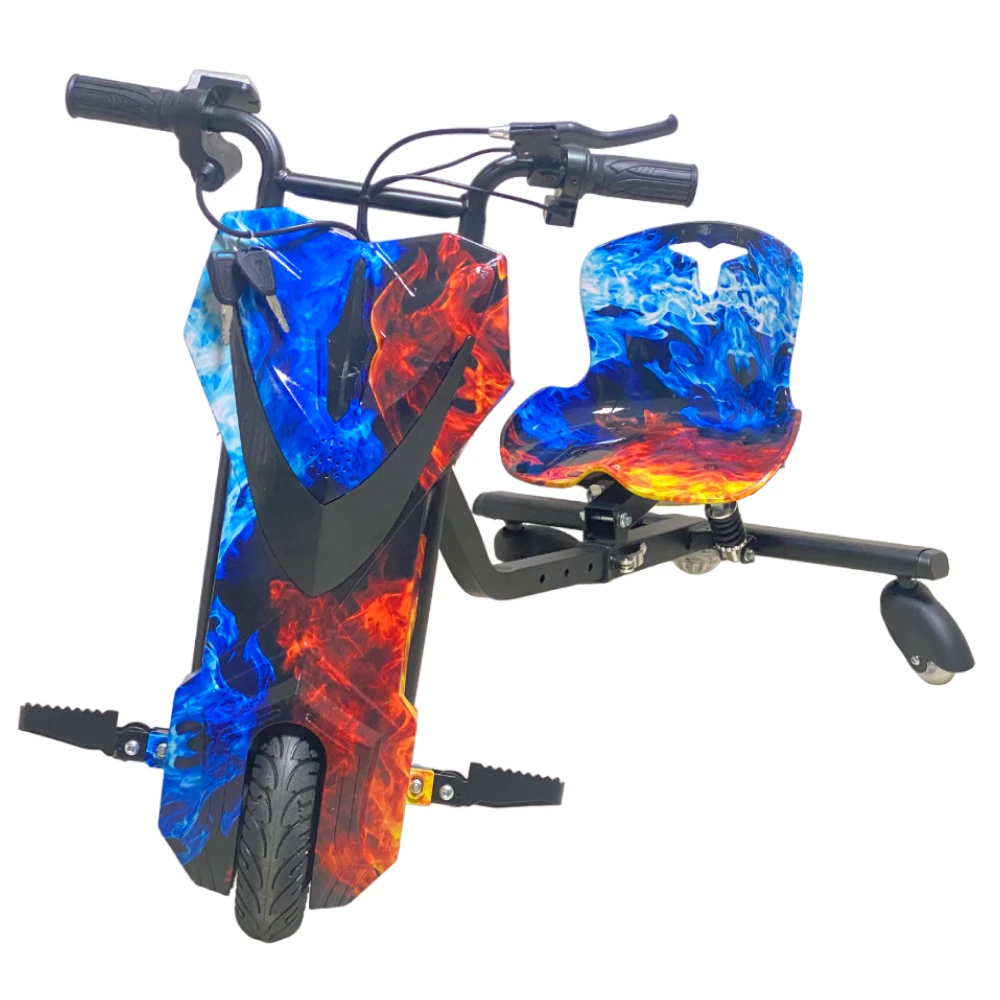 Электросамокат дрифткар в цвете "Огонь и лед" - это идеальное сочетание стиля, функциональности и производительности. Он станет вашим верным спутником в городских приключениях и открытых пространствах. Ощутите мощь и эстетику с этим уникальным электросамокатом.