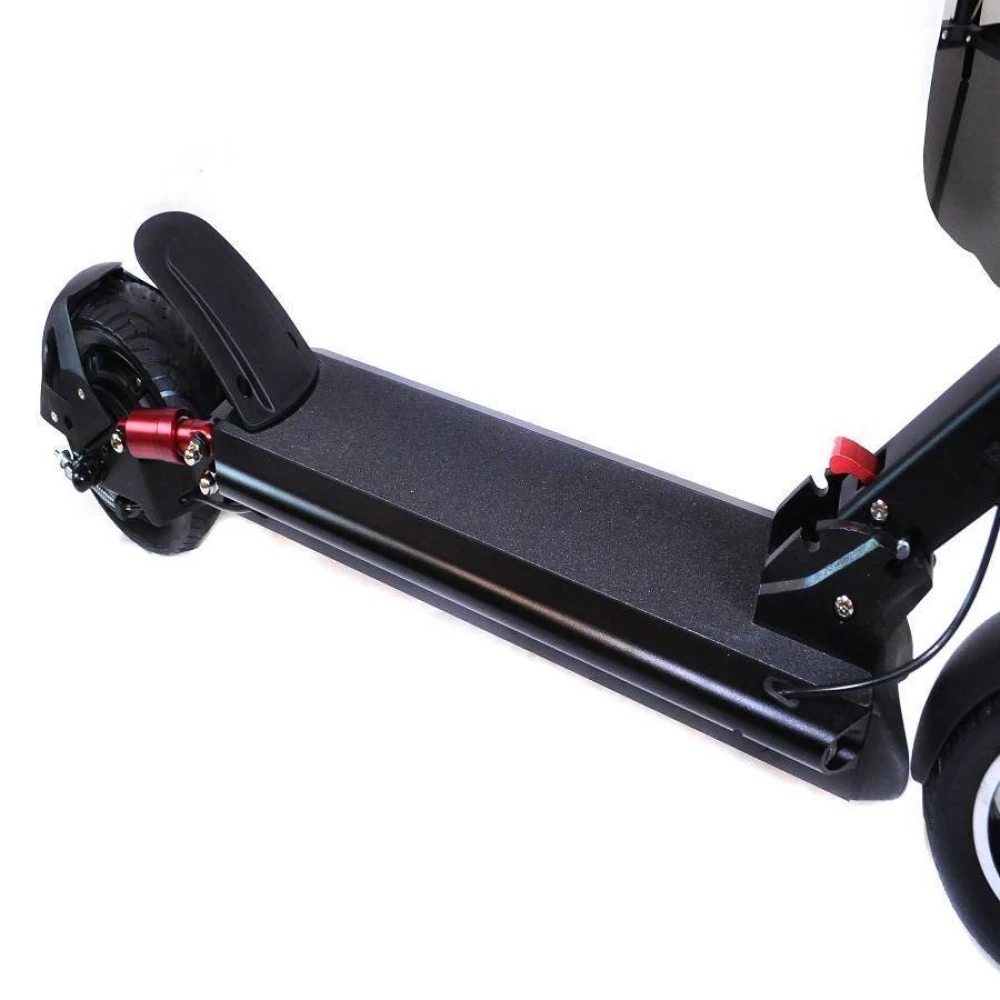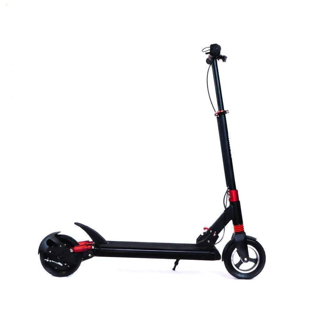Удобная складная конструкция устройства позволяет брать его с собой в длительные поездки, на работу, а также при поездке на общественном транспорте – в сложенном виде он занимает совсем немного места. С облегченной алюминиевой рамой вес электрического самоката составляет 20 кг.