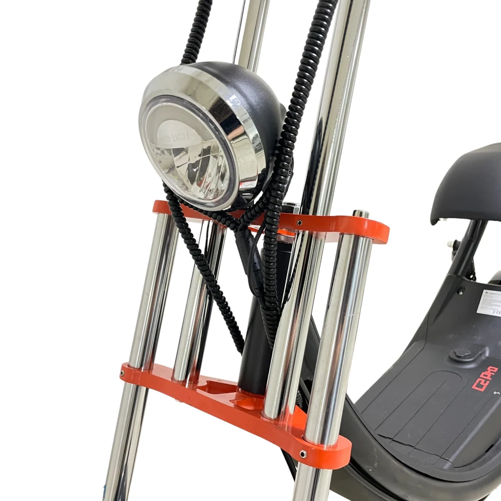 Электроскутер Kugoo Kirin С2 Pro также оборудован передним гидравлическим дисковым тормозом, который обеспечивает надежное и безопасное торможение. Вы сможете контролировать скорость и остановку с легкостью, что повышает уровень безопасности во время поездки.