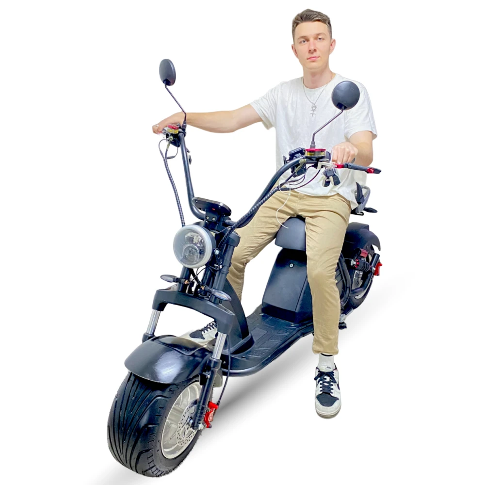 Однако, Citycoco Wolong M6 радует не только скоростью и мощностью, но и удобством в движении. Его большое мягкое сиденье предоставляет отличную поддержку для длительных поездок, а передняя и задняя системы подвески помогают поглотить выпуклости и неровности дороги, обеспечивая мягкую и комфортную езду. Кроме того, скутер оснащен ярким LED-фонарем и задними стоп-сигналами, обеспечивая безопасность при езде в низких световых условиях.