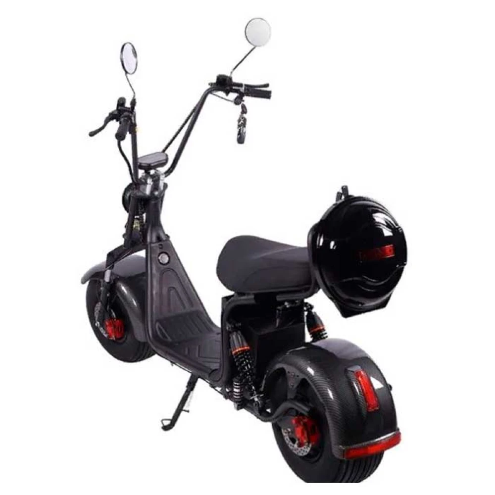 Электроскутер CityCoco Kugoo С3 - модель для увлекательных поездок по улицам города и в условиях пересеченной местности. Широкие колеса и система амортизации компенсируют неровности дороги, уменьшают тряску и создают дополнительный комфорт во время движения. Прочная стальная конструкция выдерживает нагрузку до двухсот килограммов. Столь высокая грузоподъемность оправдана, ведь удлиненное сиденье электроскутера позволяет одновременно использовать транспортное средство водителю и пассажиру. Мощный двигатель обеспечивает плавный и уверенный разгон до 60 км/час. При таком высоком показателе важна надежная тормозная система. В данной модели установлены качественные гидравлические тормоза, обеспечивающие быструю остановку транспортного средства в любой непредвиденной ситуации. Емкость аккумулятора гарантирует запас хода до 70 километров на одном заряде батареи. Система освещения, поворотники, зеркала заднего вида - это далеко не полный список преимуществ данной модели. Электроскутер оснащен закрытым багажным отсеком, в котором можно безопасно перевозить достаточно большое количество вещей. Электроскутер Kugoo С3 - комфортное и экологичное транспортное средство, которое по достоинству оценит каждый пользователь.