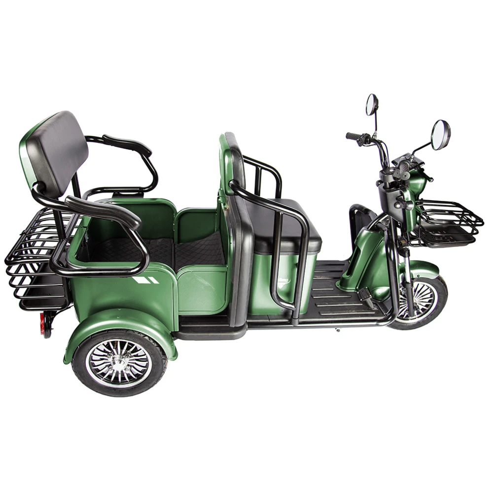 Электротрицикл Rutrike Экипаж – отличная новинка от производителя rutrike. Трициклы экипаж оснащены и адаптированы под эксплуатацию в любых погодных условиях. В новых моделях трицикла rutrike конструкция оснащена стальной рамой, грузоподъемностью до 150кг и весом 110 кг созданы максимальные условия для комфорта и безопасности. Электротрициклы rutrike экипаж востребованы на отечественном рынке и райдерами из СНГ. Купить Электротрицикл Rutrike Экипаж выгодно, выбрать хорошую модель без переплат поможет сотрудничество с нашим интернет-магазином. Трицикл оснащен электромотором мощностью 800 Вт, способный с комфортом развить скорость до 25 км/ч и преодолеть расстояние до 30 км. Модели экипаж пассажирского тс считаются одними из самых удобных и комфортных. Электротрициклы rutrike обладают анатомическими мягкими сиденьями в 2 ряда. Изучить более подробно характеристики новых моделей от производителя rutrike, получить бесплатную консультацию поможет наш интернет-магазин.