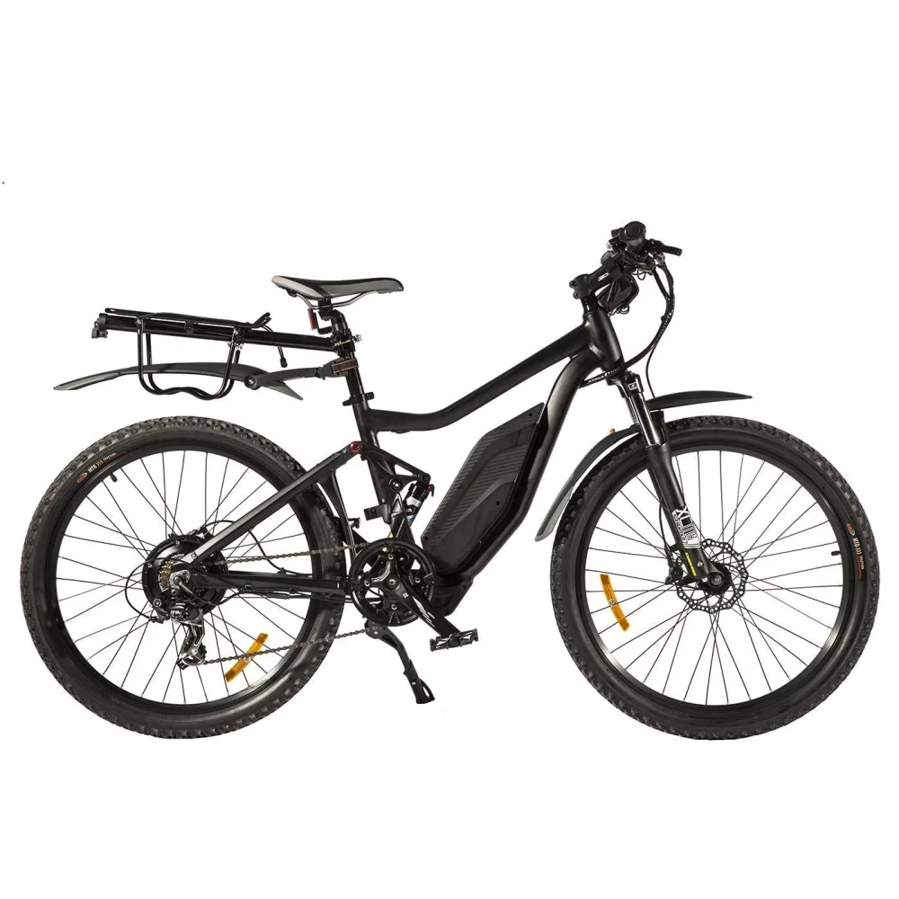 Модель оснащена редукторным мотором мощностью 500 Вт, на который подается напряжение 48V от емкой батареи 10 Ач. Аккумулятор надежно спрятан под рамой и в случае необходимости запирается на ключ. Комбинированные подвески, состоящие из передних и задних амортизаторов, снижают нагрузку и уменьшают вибрацию при наезде на дорожные неровности на пересеченной местности.