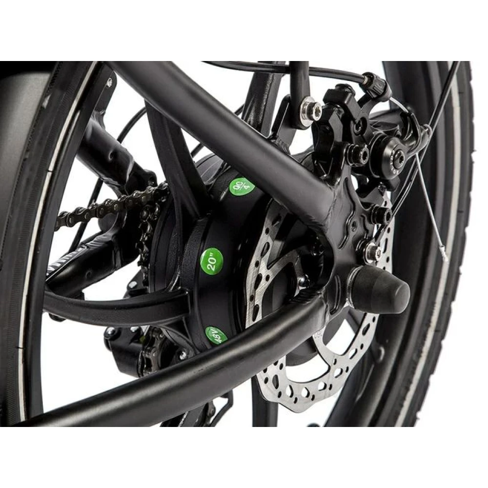 Накатистые устойчивые 20–дюймовые колеса в сочетании с емкой батареей обещают активное и безопасное времяпрепровождение. Передние и задние амортизаторы сглаживают движение по кочкам, делают его плавным. Батарея размещена за седлом. Надежно защищена от воздействия негативных факторов. 6-скоростной режим регулируется с помощью рычага. Мягкое компактное седло регулируется по высоте, удобно при длительной езде. Бортовой компьютер позволяет отслеживать скоростные параметры, степень заряда батареи и другие характеристики.