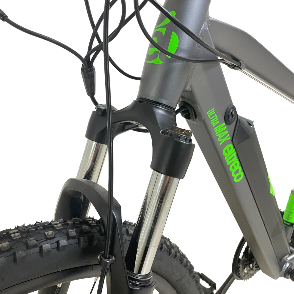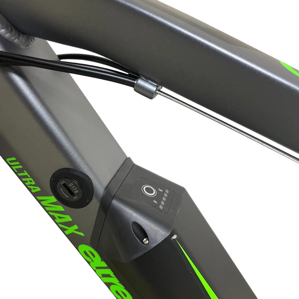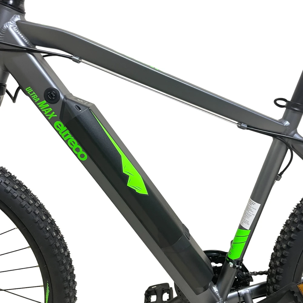 Ultra Max имеет современную лёгкую раму, сделанную из алюминия. К раме крепится легкосъёмный, компактный аккумулятор, наличие или отсутствие которого практически не влияет на управляемость и манёвренность велогибрида. Данная модель оснащена 21-скоростной трансмиссией и практичными дисковыми механическими тормозами. Это позволяет комфортно передвигаться на велосипеде без использования электродвигателя.