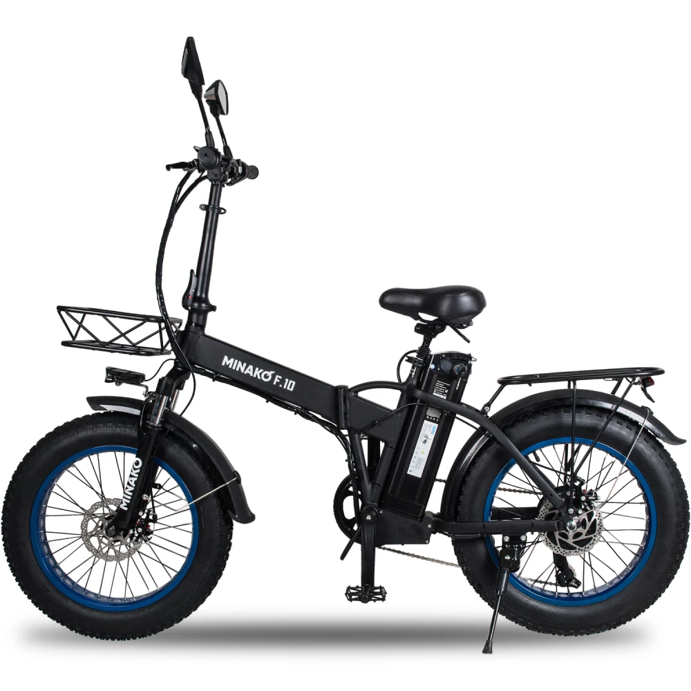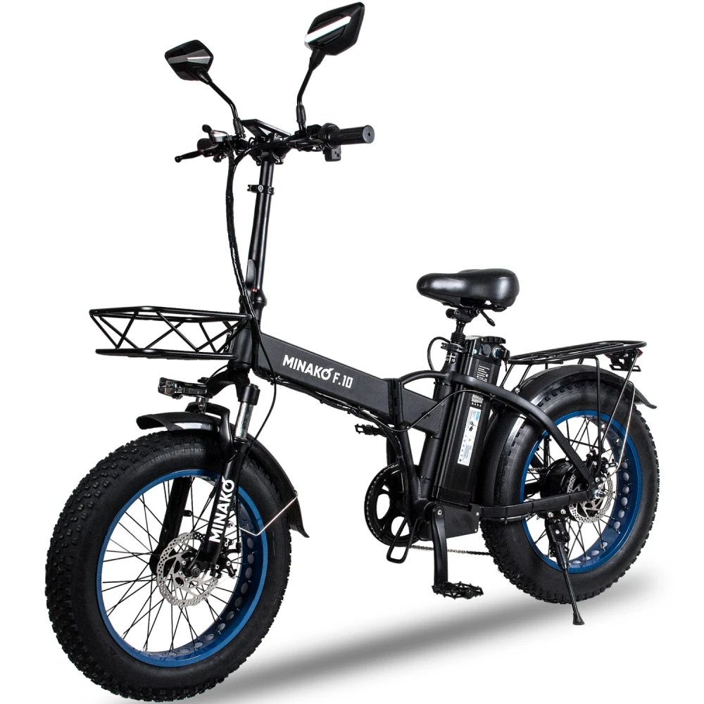 Электровелосипед Minako F10 – Синий – удобная складывающаяся модель с возможностью перевозки второго пассажира. Компактные эргономичные характеристики, удобное сиденье, привлекательный дизайн и совершенствованная техническая часть привлекают большое количество покупателей. Приобрести электровелосипед по экономически выгодной стоимости предлагает наш интернет-магазин. Сотрудничество с нами гарантирует быстрое оформление заказа, оперативную доставку, бесплатную консультацию, индивидуальное обслуживание и приятные бонусы.
