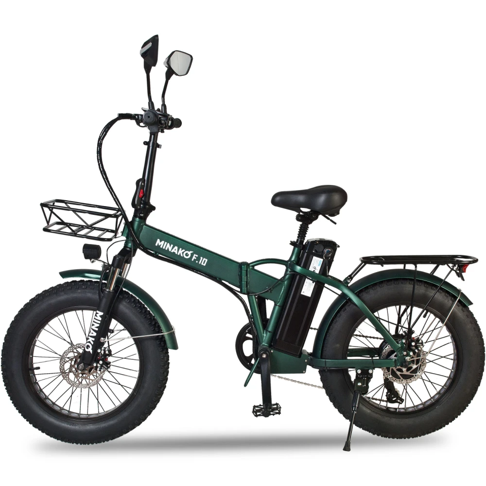ЭЛЕКТРОВЕЛОСИПЕД MINAKO F10 темно-зеленый – классический вариант складного байка лучшее предложение этого сезона. Компактная эргономичная техника весом 27 кг и грузоподъемностью 120 кг быстро трансформируется до минималистичных размеров, упрощающих процесс транспортировки и хранения.