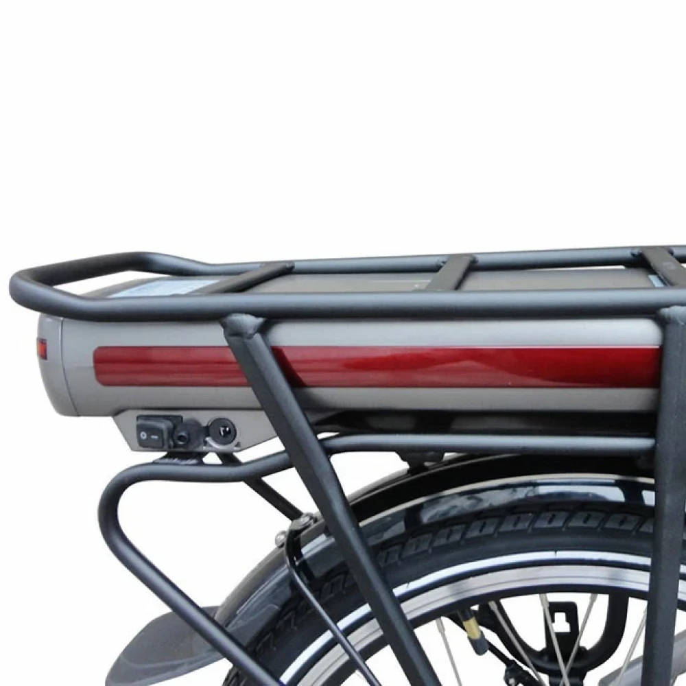 Электровелосипед оборудован мощным движком с задним карданным приводом 350 Вт. Райдер быстро наберет 25 км/час. Полного ресурса литий-ионного аккумулятора (емкостью 8,8 Ач) достаточно для преодоления 50 км пути без подзарядки, дальше пользователь может перейти на обычный режим езды. Для экономии полезного пространства быстросъемная АКБ расположена на багажнике. Широкое сидение имеет анатомически правильную форму. Алюминиевая рама имеет небольшой вес (22 кг) и низкую посадку. Тормозная система ободного типа хорошо откликается на команды и гарантирует быструю остановку. 20 дюймовые колеса имеют особую степень защиты от проколов и механических повреждений. Современный LCD-дисплей отображает основные технические параметры тс. Для быстрого оформления заказа предлагаем связаться с менеджером компании.