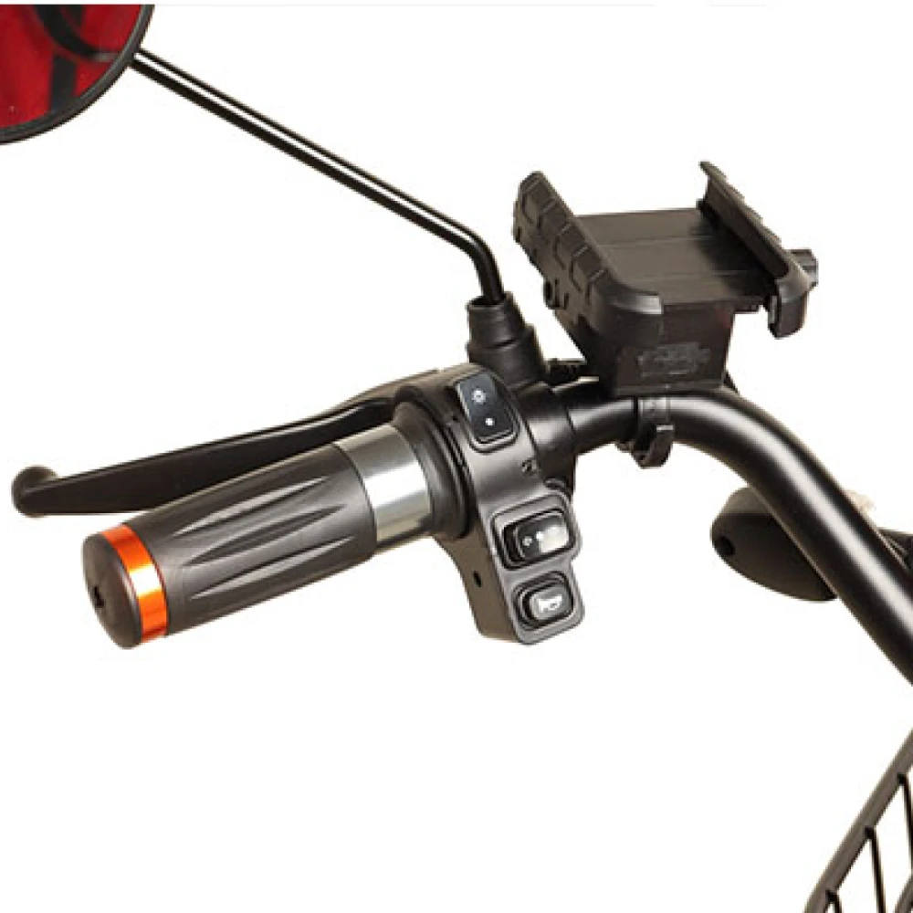 • Корзина в комплекте — для сумок, покупок или мелкого груза.