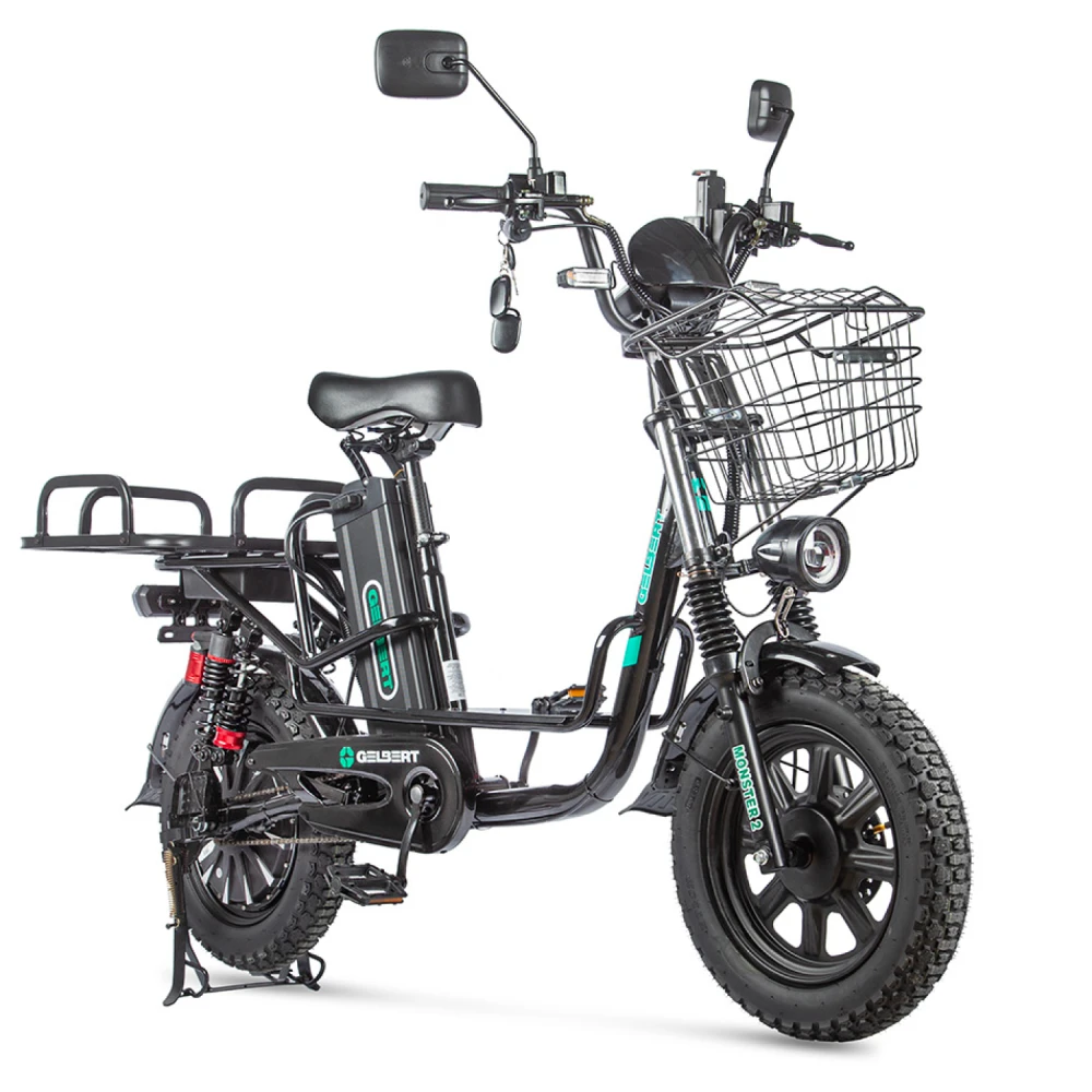 Электровелосипед Eltreco Gelbert Khan Monster 2 – это современное средство передвижения, сочетающее в себе продуманную конструкцию, передовые технологии и стильный дизайн для уверенных городских и пригородных поездок.Модель оснащена передним и задним амортизаторами, которые эффективно смягчают неровности дороги, обеспечивая плавность хода и комфорт даже на пересеченной местности. При заявленном максимальном пробеге до 100 км на одном заряде этот велосипед подходит для длительных поездок – конечно, реальные показатели зависят от веса райдера, рельефа местности, погодных условий и температуры окружающей среды.Безопасность обеспечивается за счет дисковых гидравлических тормозов, которые гарантируют надежное и своевременное торможение в любых ситуациях. Легкий вес в 57 кг позволяет легко маневрировать, а максимальная нагрузка до 150 кг делает модель универсальной для разных категорий пользователей.Двигатель мощностью 240 W, размещенный в задней части, обеспечивает эффективное ускорение и оптимальное распределение энергии, что способствует стабильной работе в условиях городской среды. Электровелосипед оборудован аккумулятором с емкостью 30 Ah и рабочим напряжением 60 V, что гарантирует долгий срок службы батареи и надежную работу даже на длинных маршрутах.Габариты в собранном состоянии – 1700×1150×800 мм – обеспечивают удобное расположение для водителя, а использование качественной стали в конструкции гарантирует долговечность и надежность всей системы. Дополнительное оснащение включает зеркала заднего вида, которые повышают безопасность, а встроенные передние и задние габаритные фары обеспечивают отличную видимость в условиях недостаточной освещенности.Стоит отметить, что данная модель не является складной, что подчеркивает ее прочную и стабильную конструкцию, рассчитанную на долгосрочную эксплуатацию. Электровелосипед Eltreco Gelbert Khan Monster 2 – это оптимальное решение для тех, кто ищет сочетание высоких технологий, надежности и комфорта в одном устройстве.