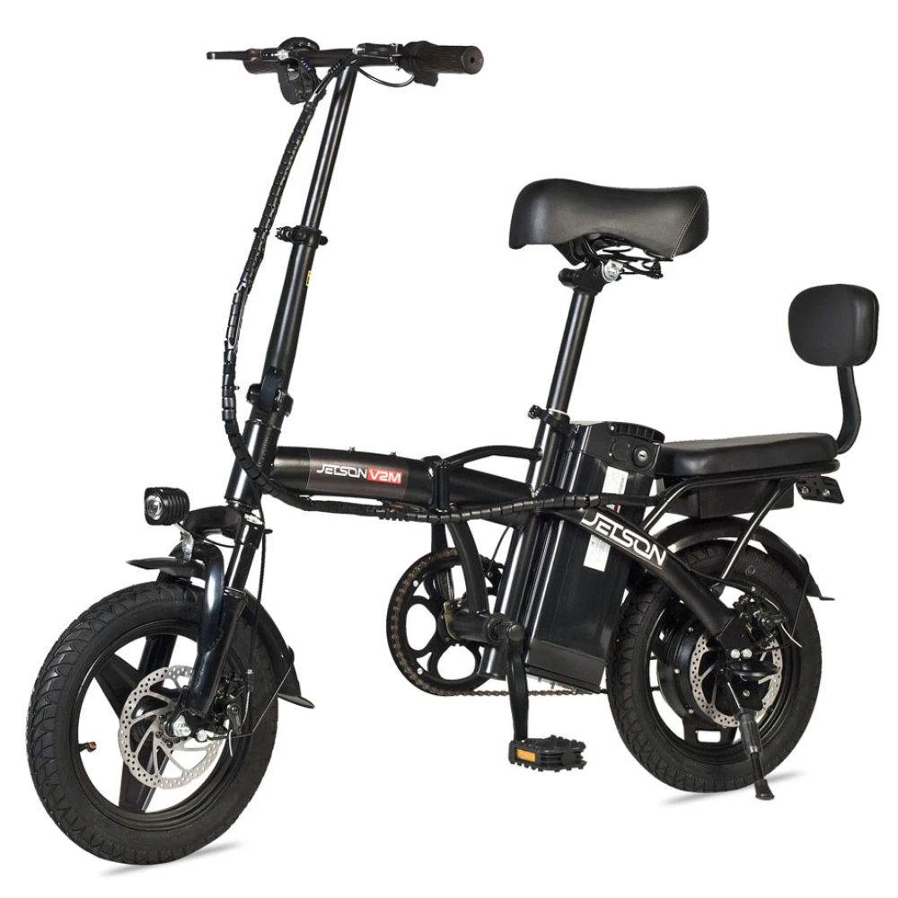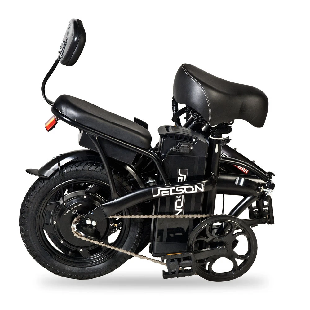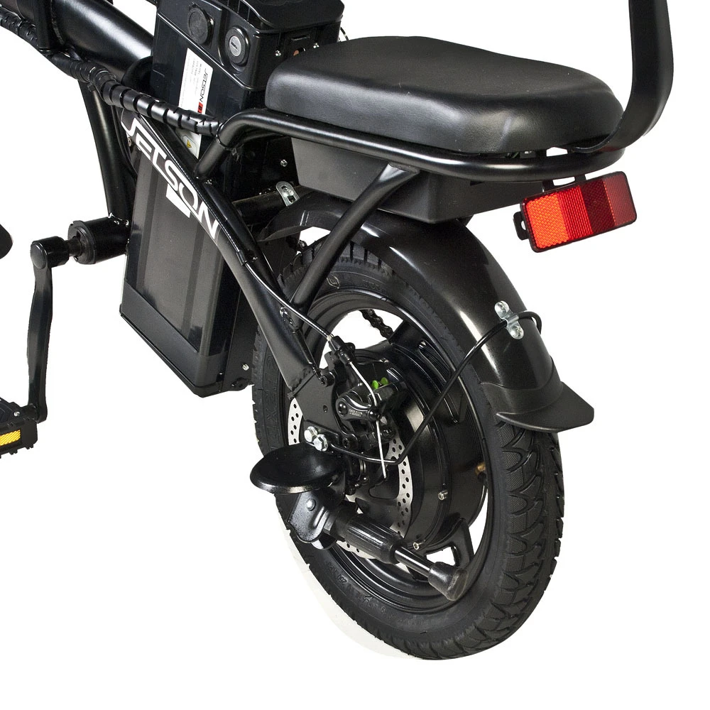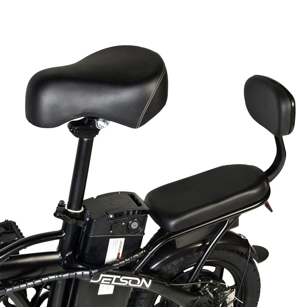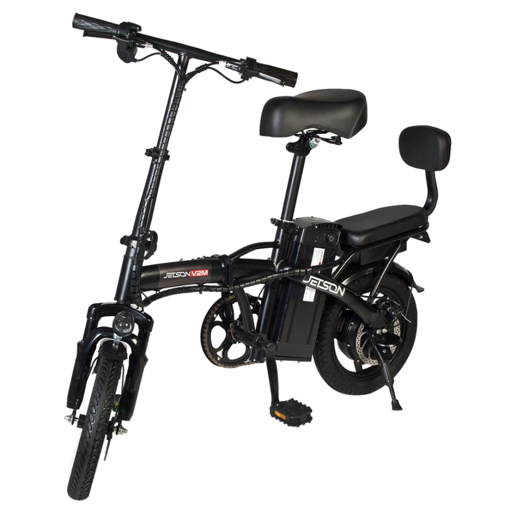 Электровелосипед Jetson V2-M 350W (48V/8,8Ah) черный – техника с заниженной конструкцией рамы и дополнительным седлом востребована семейными парами для ежедневного использования. Покупка электровелосипеда решит проблему доставки ребенка в садик или школу минуя общественный автотранспорт. Купить современный велогибрид грузоподъемностью не более 120 кг предлагает наш интернет-магазин.