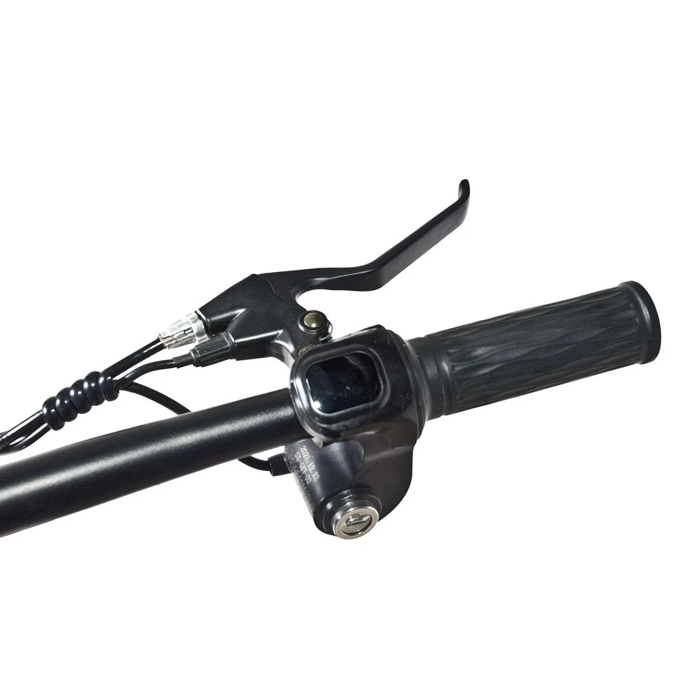 Мощность электромотора 350 Вт и емкости батареи – 8,8 А*ч достаточно для развития приличной скорости – до 40 км/час и преодоления расстояния до 40 км пути. Байк оснащен механическими тормозами и 14-дюймовыми накатистыми колесами. Батарея размещена за подседельной частью в специальном блоке. Надежно спрятана от негативных воздействия погодных факторов.