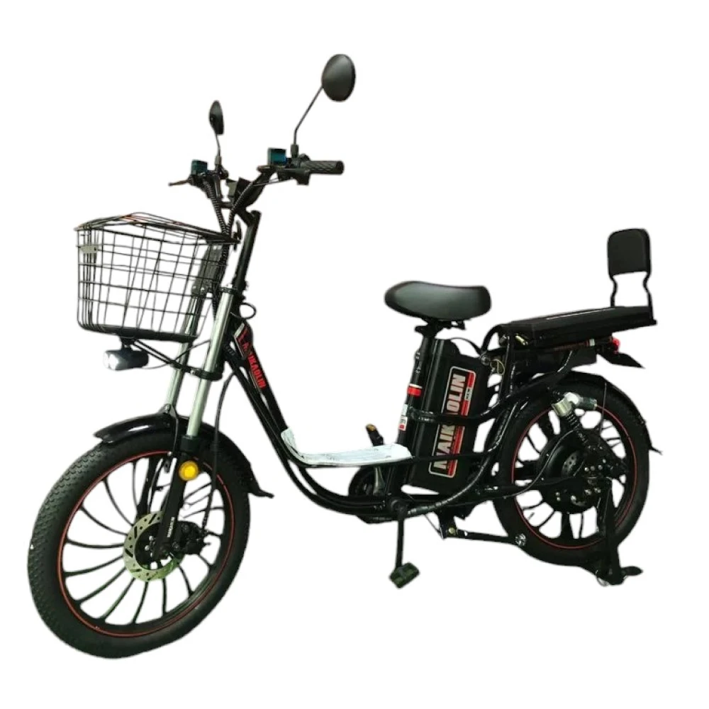 В комплекте: электровелосипед, аккумулятор, зарядное устройство, багажник, корзина.