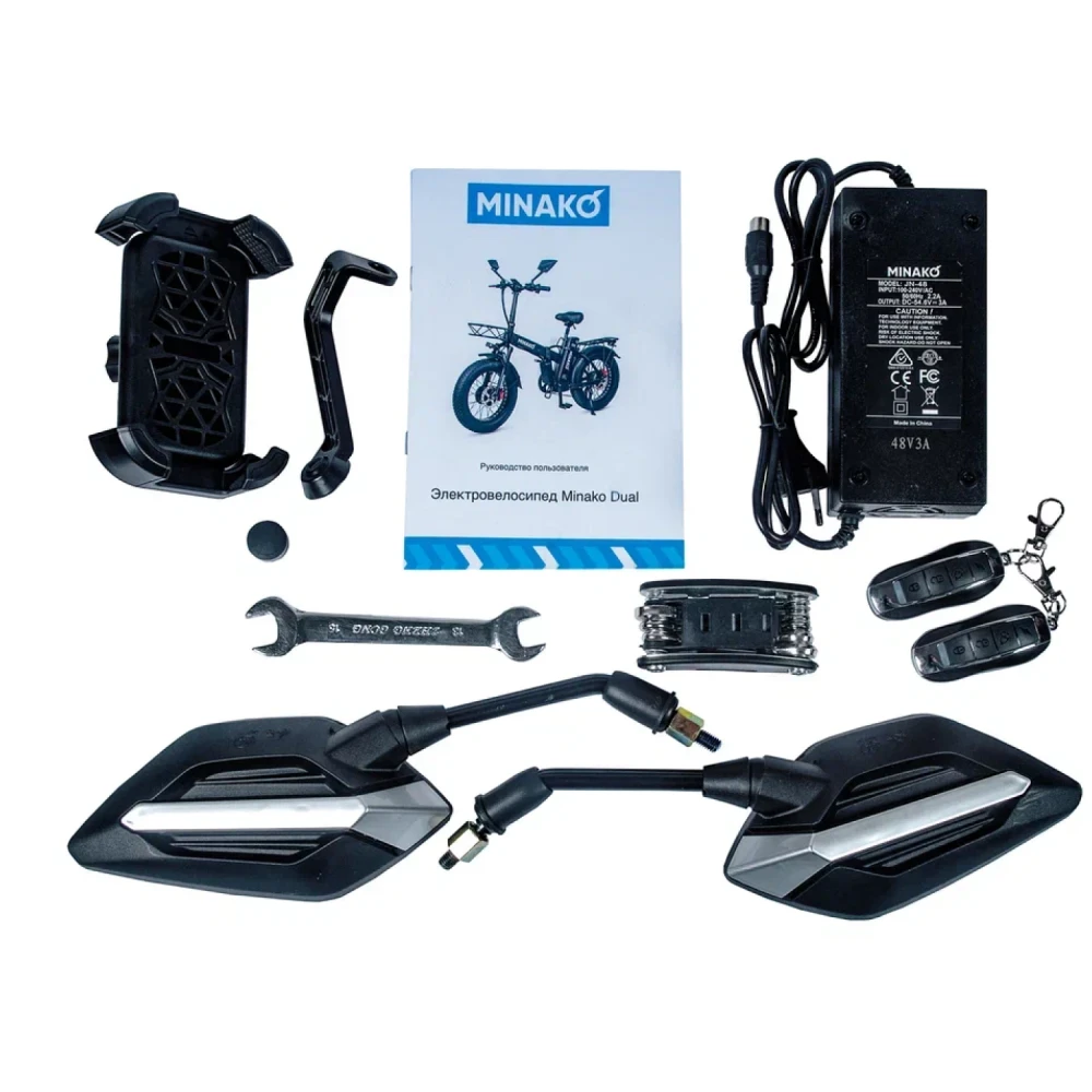 инструкция, зеркала, ЗУ, сигнализация, ключи для сборки, мультитул, зарядка, передние поворотники