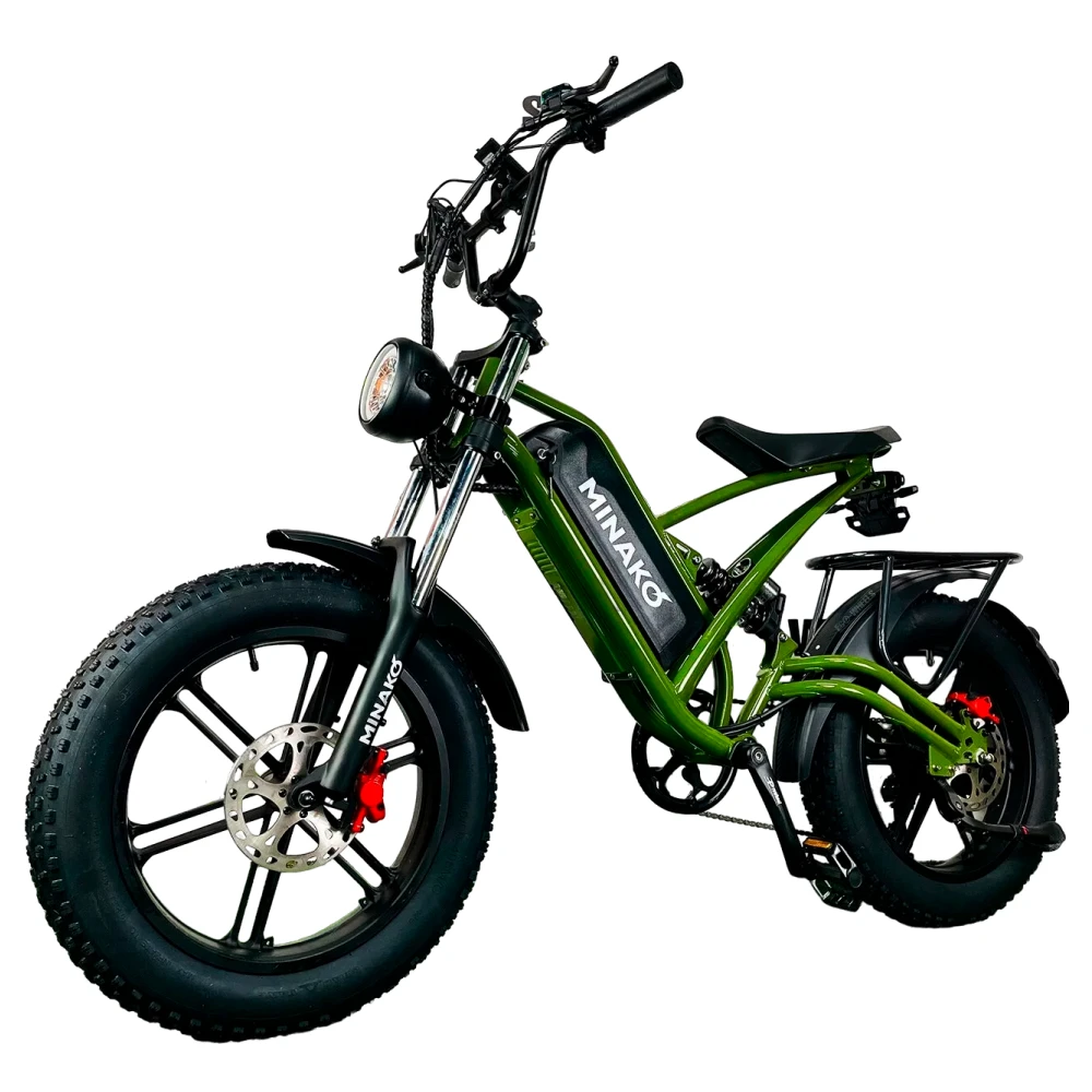 Электровелосипед Minako FOX (23Ah) с литыми дисками в цвете "хаки" - это идеальный выбор для тех, кто ценит стиль, производительность и надежность.