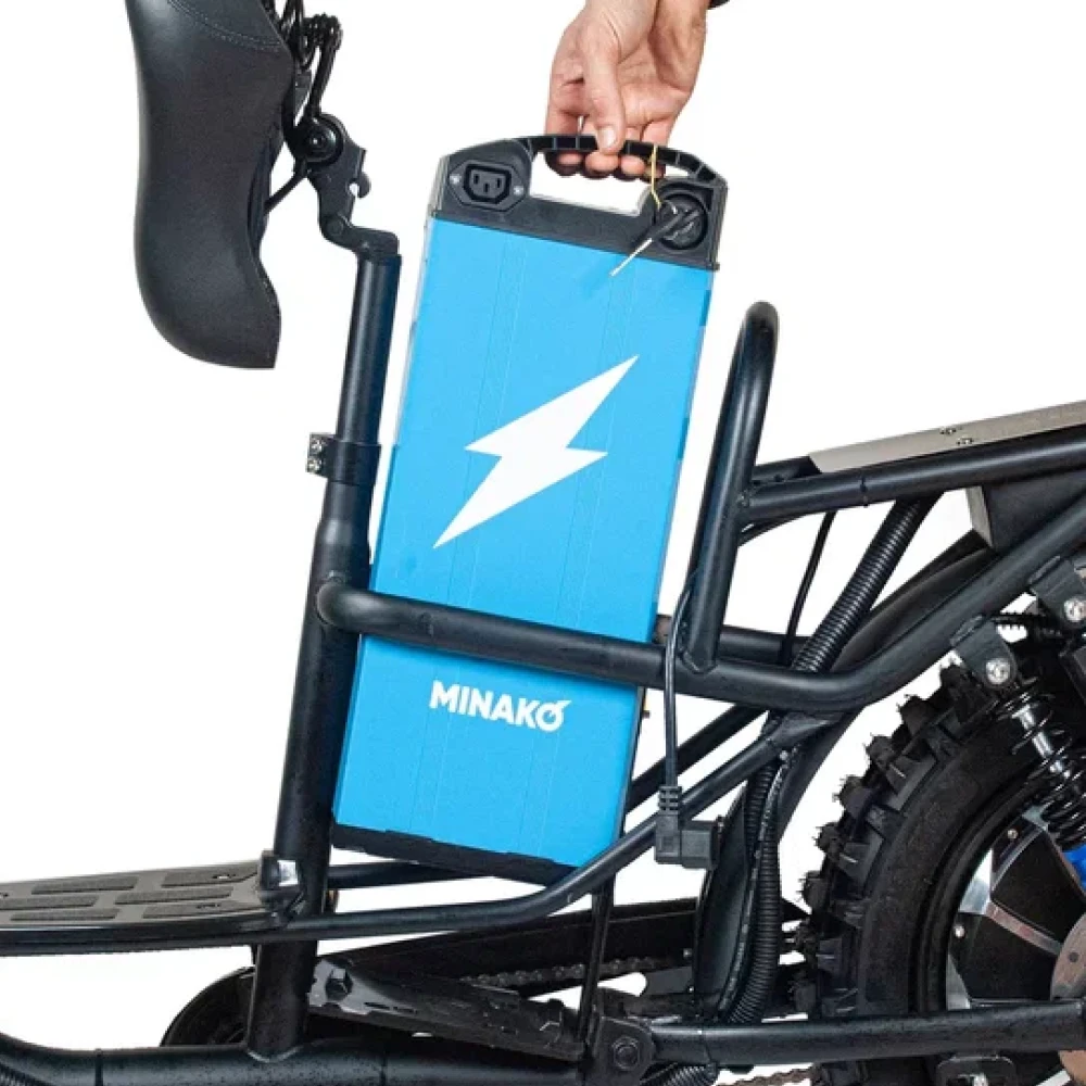 Электровелосипед Колхозник Minako Titan — это идеальное сочетание мощности, стиля и комфорта, предназначенное для тех, кто ценит активный отдых. С максимальной скоростью до 50 км/ч и максимальным пробегом на одном заряде в 80 км, этот электровелосипед станет вашим надежным компаньоном в любых поездках, будь то городские прогулки или загородные выезды.Уникальная металлическая цельная рама обеспечивает прочность и долговечность, а мощный 500-ваттный двигатель гарантирует динамичное разгон и высокую производительность. Призматический аккумулятор на 30Ah Li-NMC не только повышает эффективность, но и позволяет сократить время зарядки до всего лишь 3 часов с зарядным устройством на 10 А/ч.Гидравлические передние и задние тормоза обеспечивают надежное торможение в любых условиях, а кроссовые покрышки 16x3.0 позволят уверенно чувствовать себя как на асфальте, так и на бездорожье. Ключ блокировки аккумулятора добавляет уровень безопасности, что особенно важно в условиях городской среды.Электровелосипед представлен в стильном черном цвете и является продуктом бренда Minako, известного своим качеством и надежностью.