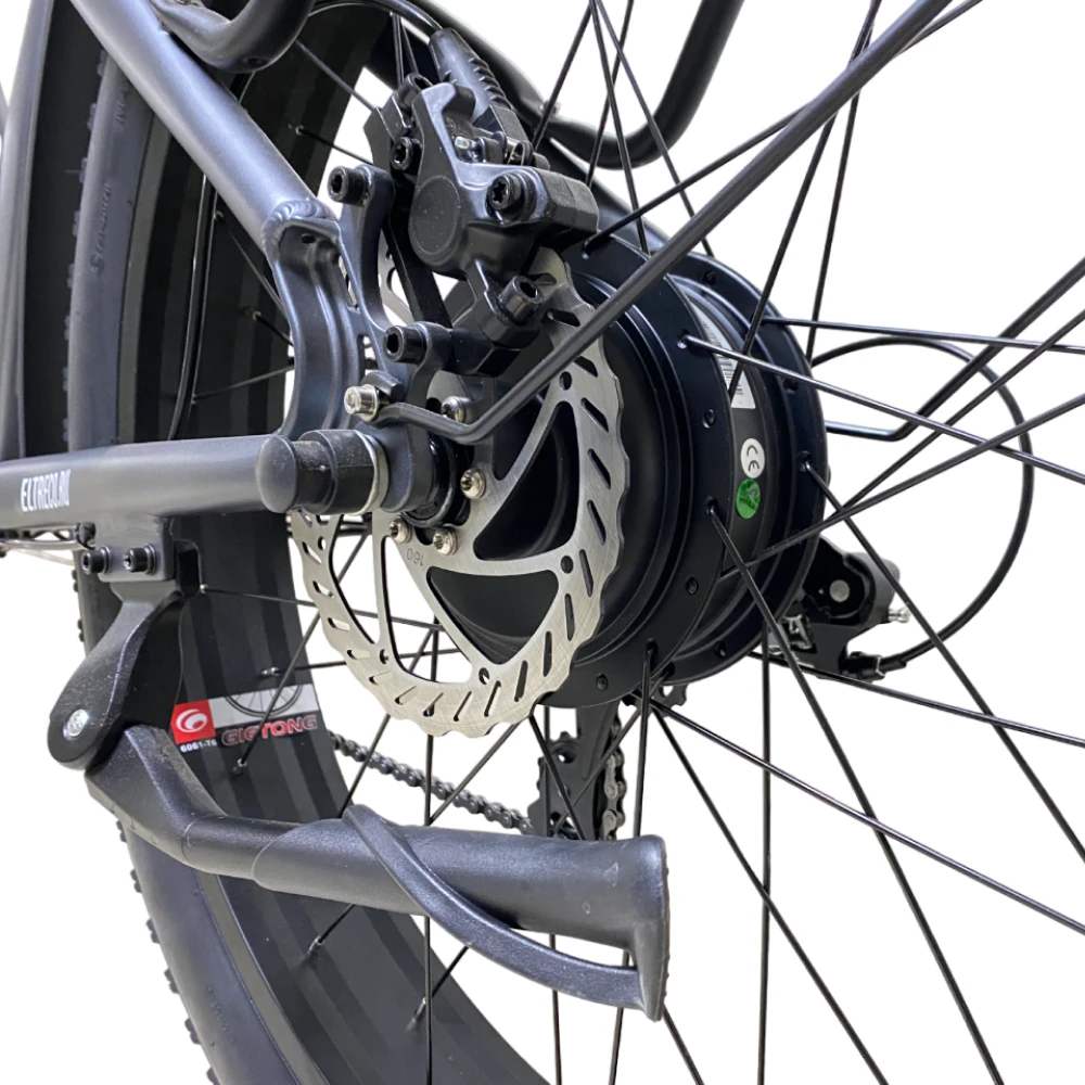 У этого электровелосипеда также есть еще одна особенность, делающая его уникальным - два мотора в колесах по 500 ватт каждый. Это позволяет легко преодолевать подъемы и разгоняться на ровных участках дороги.
