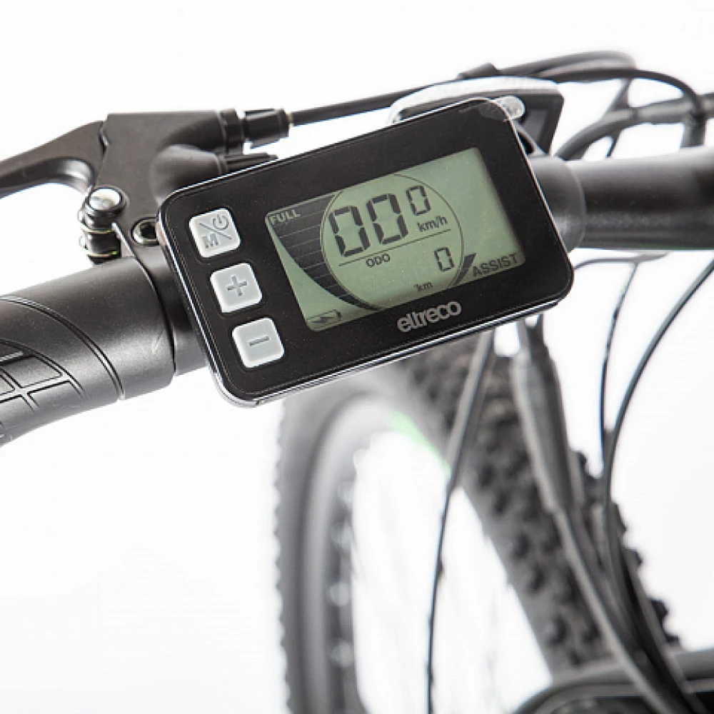 LCD-дисплей, с информацией о скорости, заряде и пробеге, уровень мощности ассистента