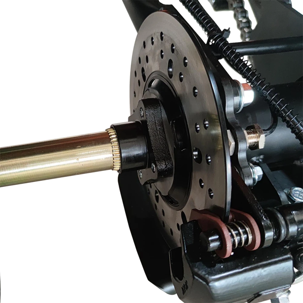 В основе — надёжный 4-тактный бензиновый двигатель объёмом 200 см³ с одним цилиндром и задним приводом. Он обеспечивает разгон до 65 км/ч, а благодаря карбюраторной системе подачи топлива и воздушному охлаждению двигатель работает стабильно и без перегрева. Запаса бака на 5,5 л достаточно для длительных поездок без частых заправок.