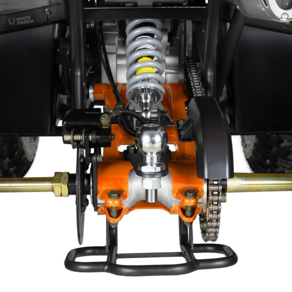 WHITE SIBERIA BARS 200CC PRO оснащен 200-кубовым четырехтактным двигателем мощностью 12 500 Вт (около 17 л.с.) с балансировочным валом, обеспечивающим плавность работы и надежность. Трансмиссия вариаторного типа с передним, нейтральным и задним ходом (F-N-R) упрощает управление и позволяет комфортно передвигаться в самых разных условиях. Модель отличается двухподвесной системой: передняя — 2-х рычажная шаровая, задняя — гидравлический амортизатор с регулировкой жесткости, что обеспечивает плавный ход и устойчивость даже на неровностях. Каркас из стали повышает прочность и долговечность квадроцикла. Среди уникальных решений — подогрев ручек для комфорта в холодное время года и наличие лебедки для самовывоза из трудных мест. Модель получила положительные отзывы за сочетание мощности и плавности хода в своем классе.