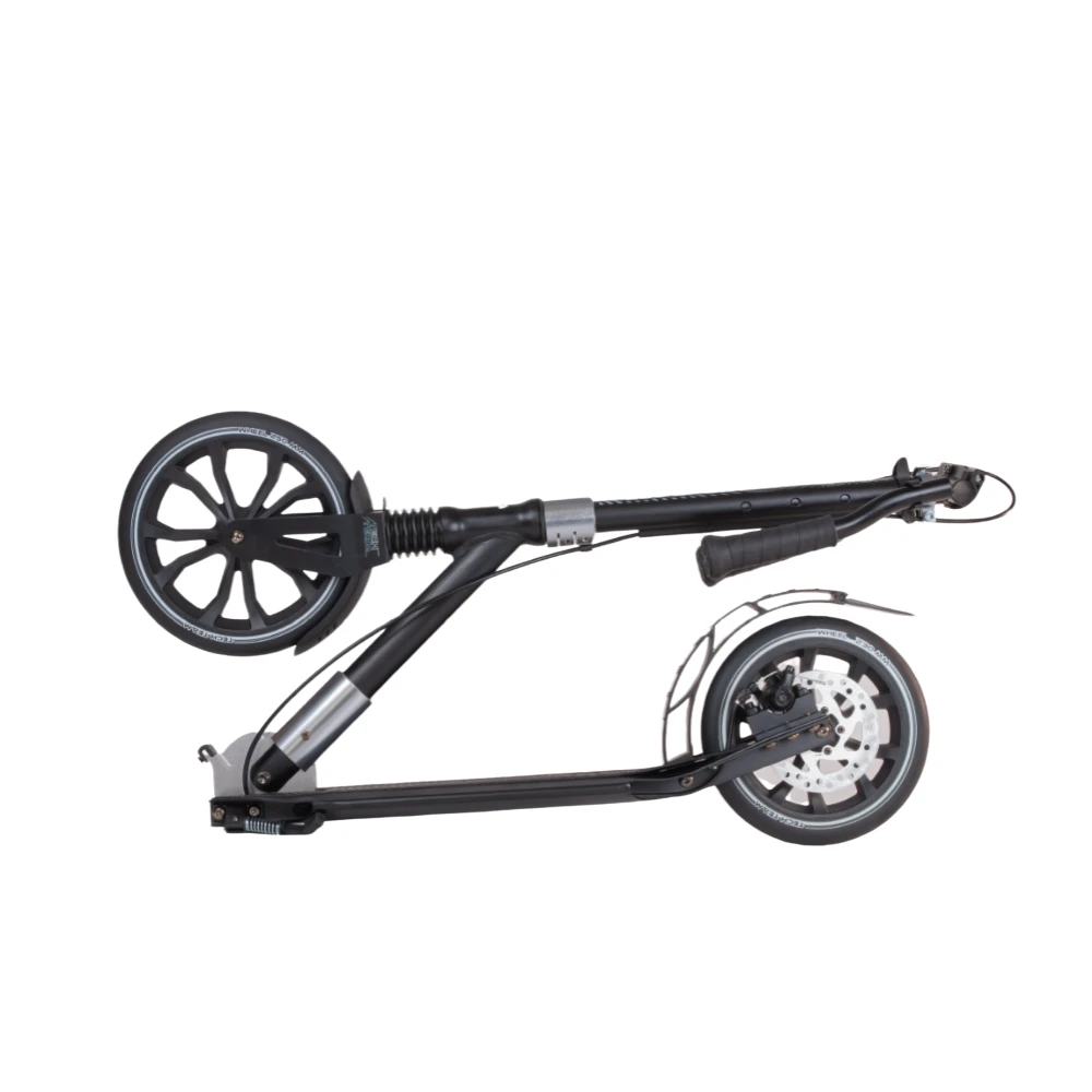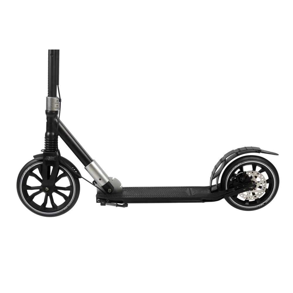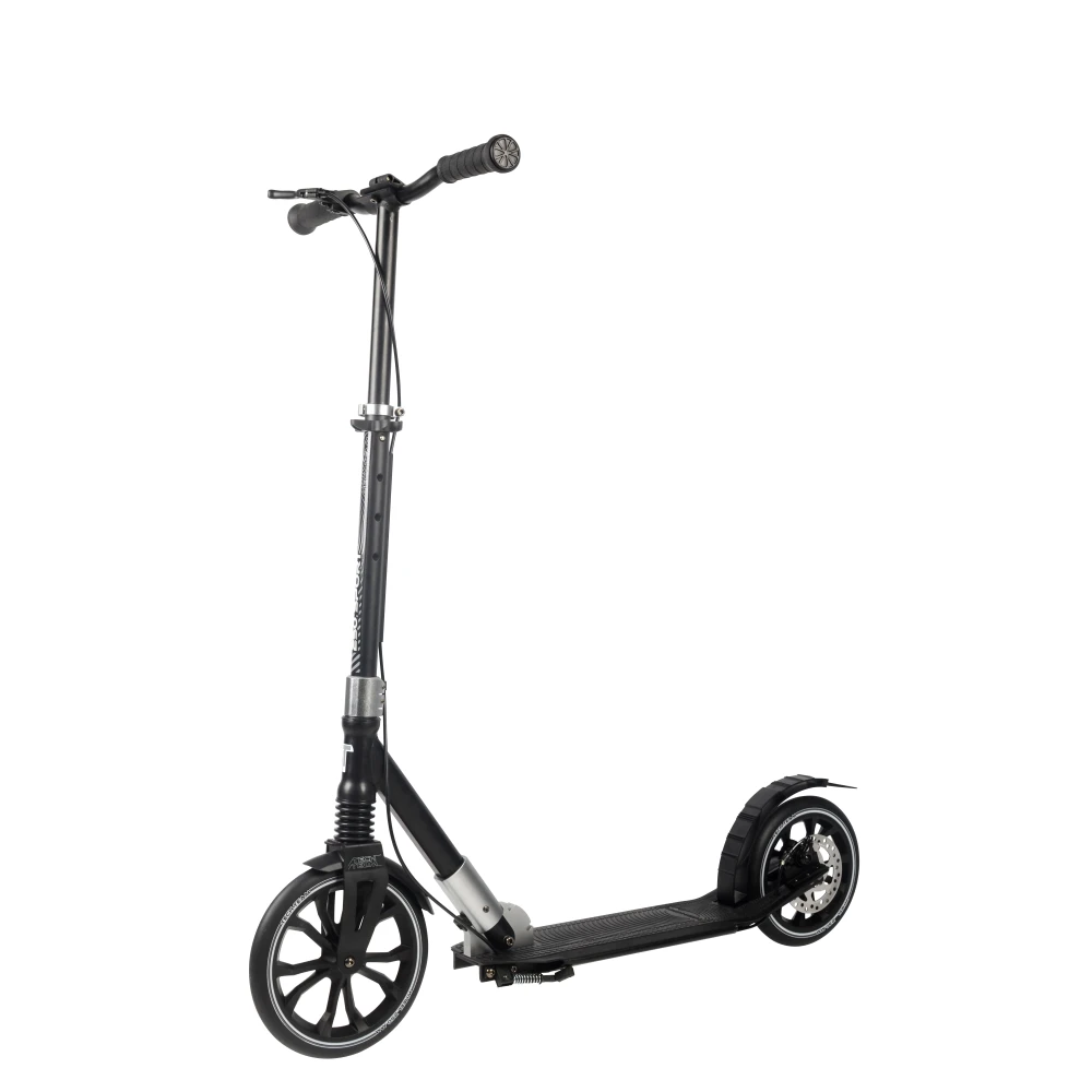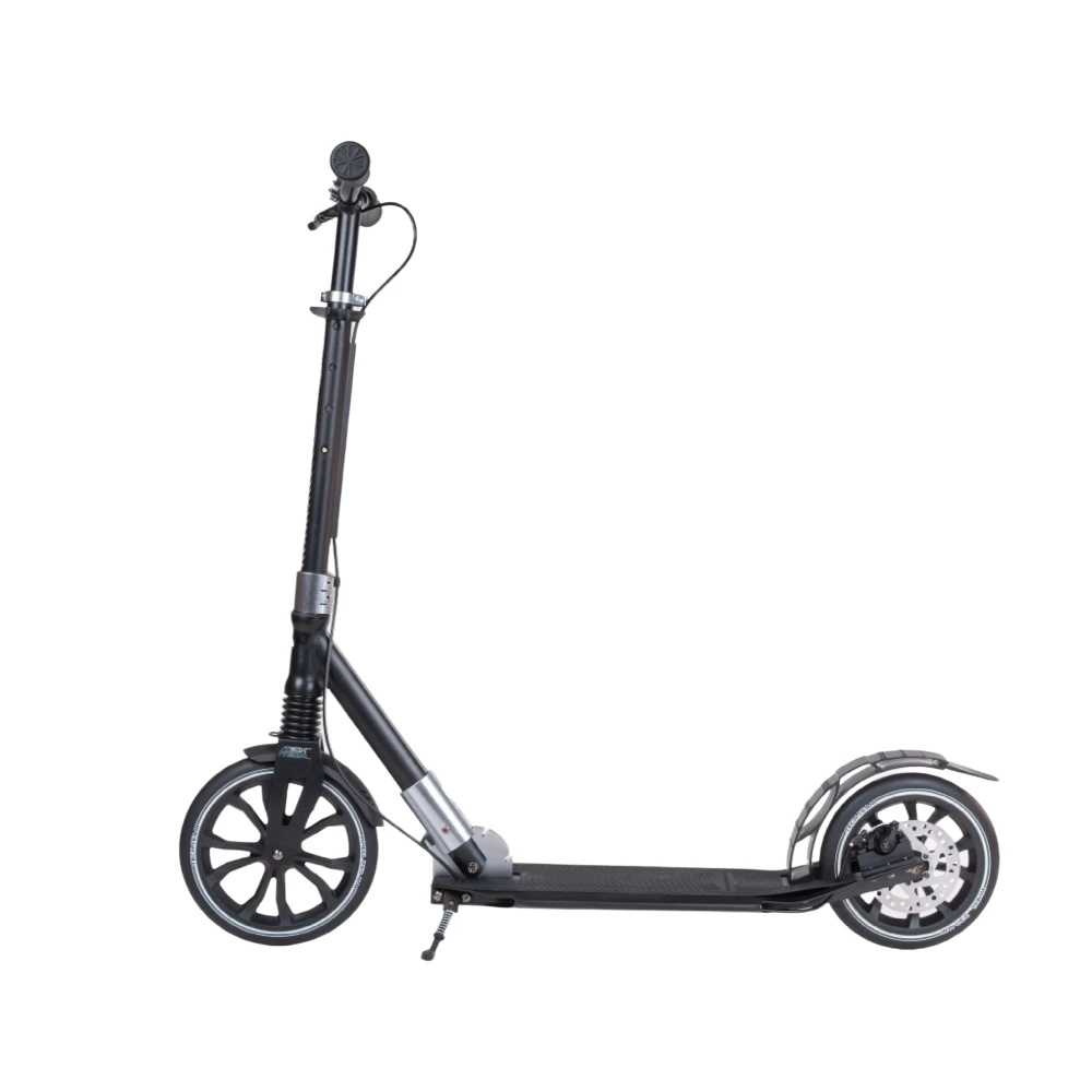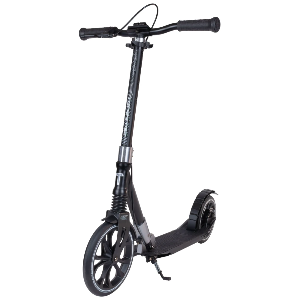 Самокат Tech Team SPORT 250R 2022 в черно-сером цвете напоминает технику будущего, приятно удивил подрастающих райдеров. Купить самокат по лучшей цене, воспользоваться индивидуальным обслуживанием и бесплатной консультацией предлагает наш интернет-магазин. Городской вариант самоката создан для активных ездоков начиная с 9-летнего возраста ростом от 135 см. Максимальные параметры грузоподъёмности и естественно вес пользователя должен составлять не более 50 кг. Преимущественные технические характеристики обусловлены высокими параметрами комфорта и безопасности, простой и удобством эксплуатации.