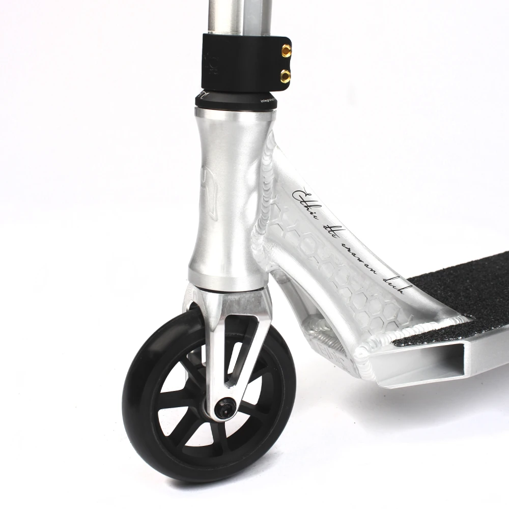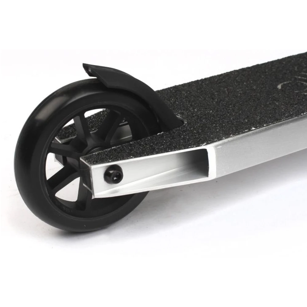 Самокат оснащен прочной алюминиевой рамой, которая обеспечивает надежность и долговечность. Это позволяет безопасно выполнять трюки и маневры как на скейт-парке, так и в городской среде. Комфорт и безопасность при катании обеспечивается продуманной системой амортизации.