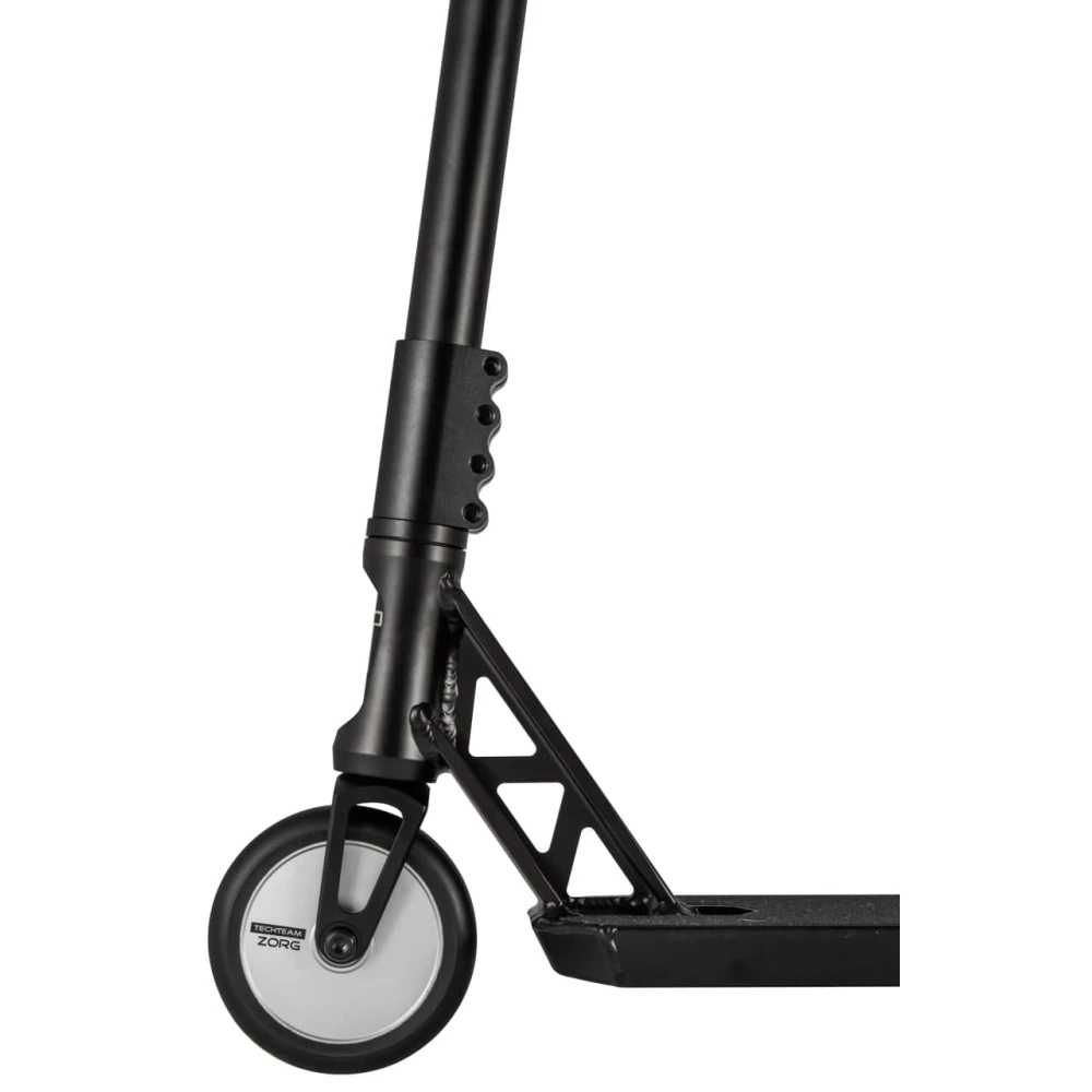 Трюковый самокат TECH TEAM TT ZORG СЕРЕБРО. Модель от компании Tech Team. Самокат способен выдержать вес до 100 кг. Дека выполнена в форме короба из лёгкого высокотехнологичного алюминия, все скошенные углы заварены. В конструкции используют фрагменты для защиты пользователя от ненамеренного тормоза при выполнении какого либо трюка что немаловажно при обеспечении безопасности. Т-образный руль так же обладает усилением для перепадов нагрузки.