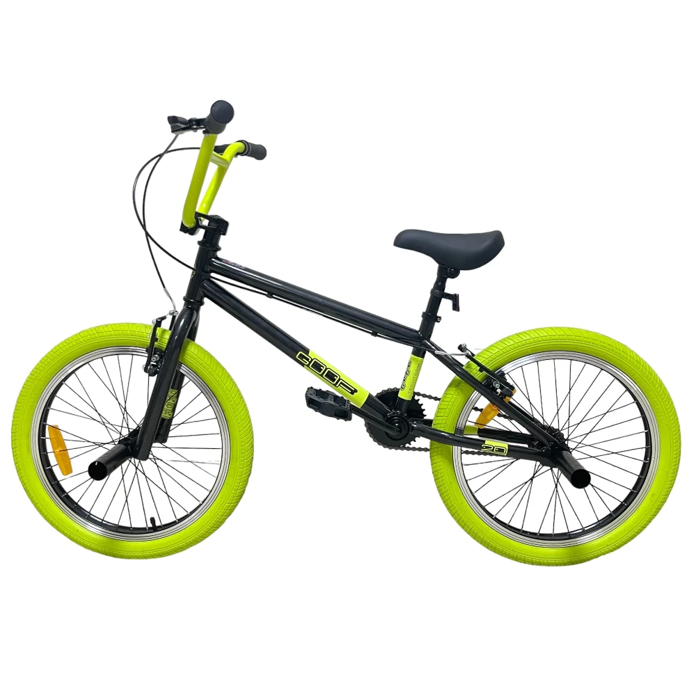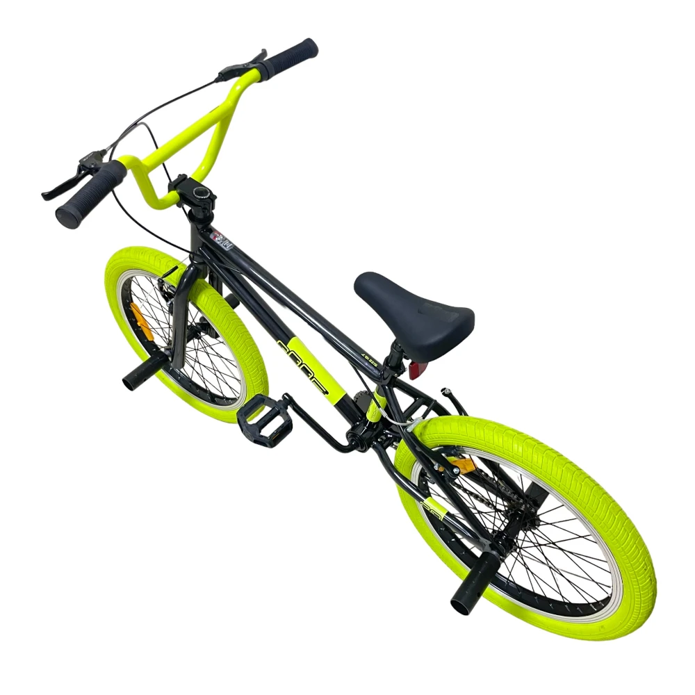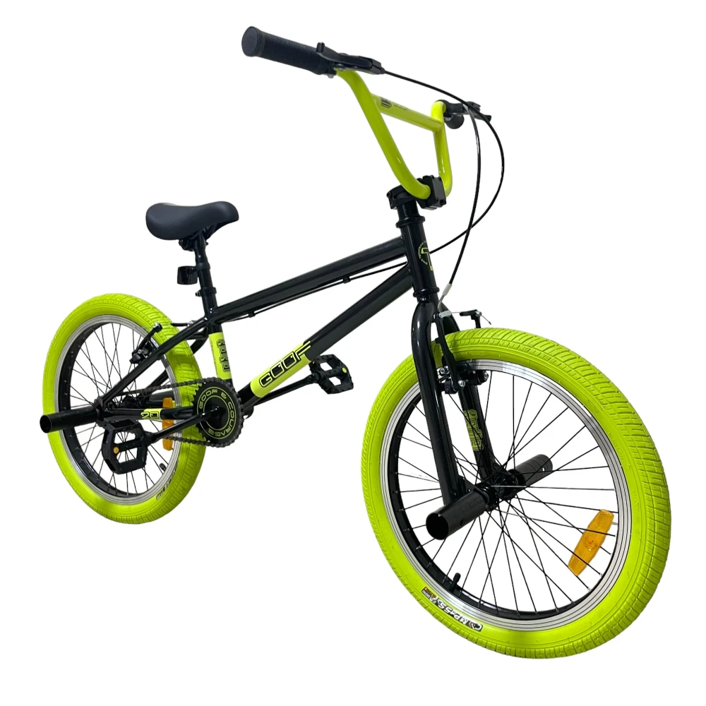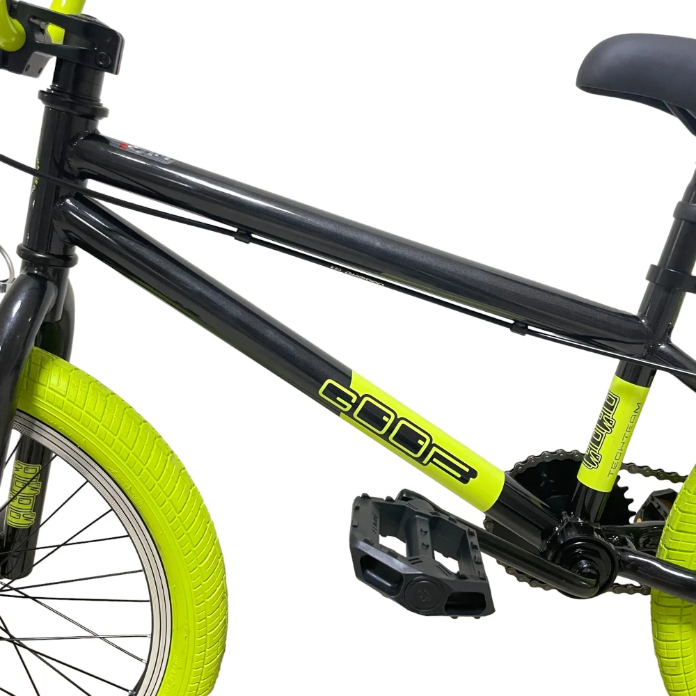 Велосипед BMX Tech Team GOOF 2024 в черном цвете с зеленоватыми рулем и покрышками – это сочетание стиля и надежности. С максимальной нагрузкой до 110 кг и 20-дюймовыми колесами, этот велосипед легко справится с любыми испытаниями. Ободные тормоза V-типа из алюминия спереди и сзади обеспечат безопасность и контроль. Стальная вилка и рама размером 18,7 дюйма делают этот велосипед прочным и готовым к любым трюкам. Пеги на передних и задних колесах и трещотка на 16 зубьев добавляют функциональности и делают его идеальным для экстремальных видов спорта.
