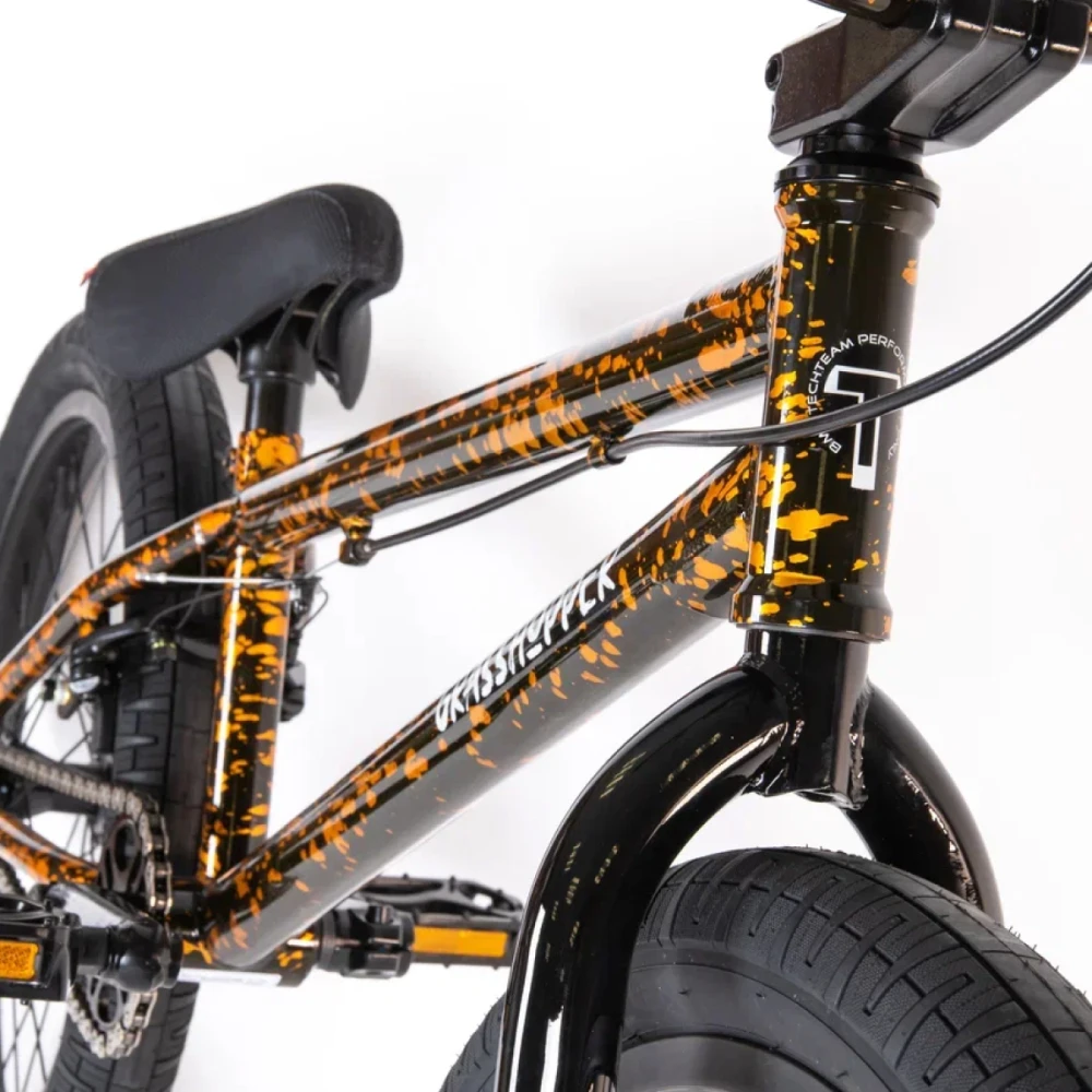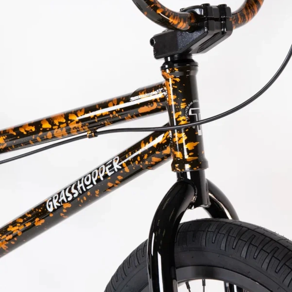 ВЕЛОСИПЕД BMX TECH TEAM GRASSHOPPER трюковый велосипед массой 12,1 кг в оранжево-черном цвете стал житом 2022 года. Модель выглядит круто и минималистично, не имеет лишних запчастей, простая в управлении. Купить велик по экономически выгодной стоимости, остаться довольными результатом прилагает наш интернет-магазин.