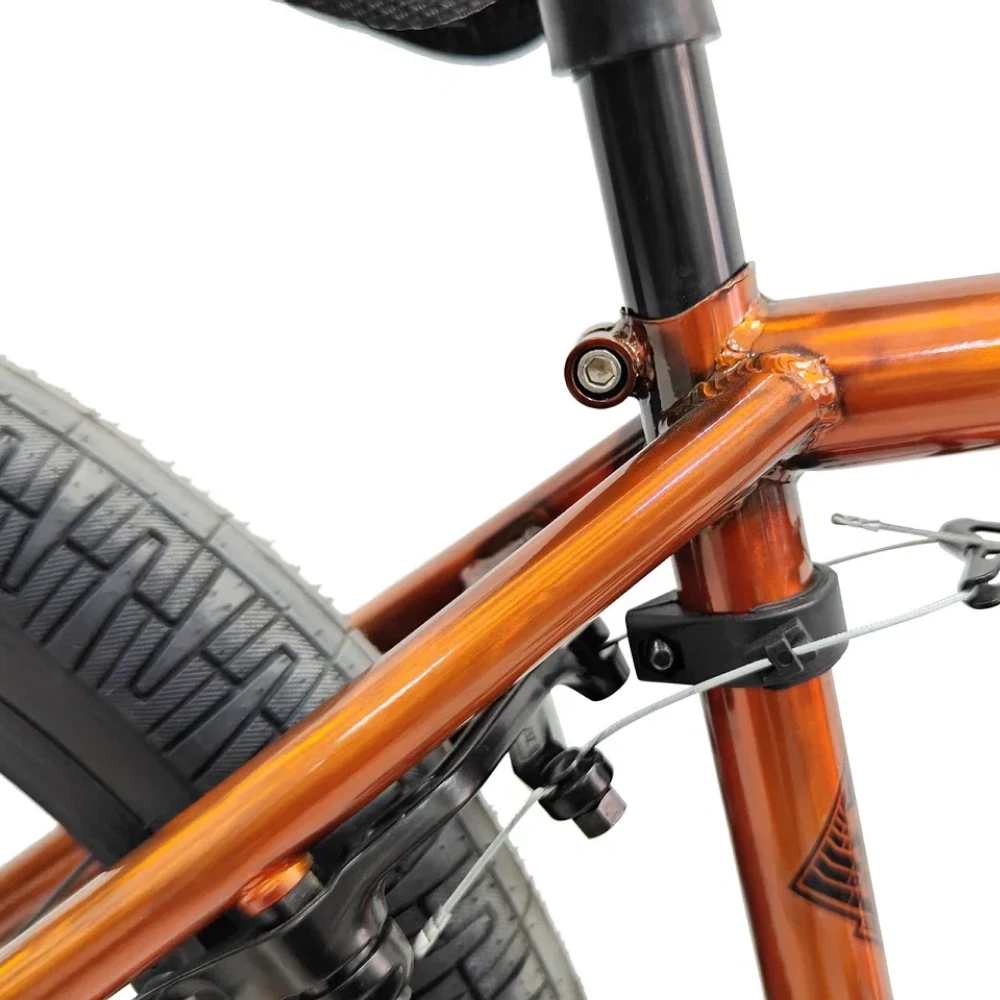 Tech Team BMX Millennium 20х20,8 оранжевый 2024 – это воплощение динамики и стиля. Яркий оранжевый цвет притягивает взгляды, а рама из стали гарантирует долговечность и надежность. Велосипед снабжен алюминиевым задним тормозом U-типа для мгновенной остановки. Стальная вилка с конусными ногами и выбегом 25 мм обеспечивает отличную управляемость. Интегрированная рулевая Neco на промышленных подшипниках добавляет комфорта. Широкий стальной руль длиной 740 мм позволяет уверенно контролировать движение. Тканевое седло и пластиковые педали создают удобство и легкость. Система Kenli Mid с компонентами Cr-Mo и шатунами длиной 175 мм гарантирует плавность и надёжность. Габариты рамы 20,8" идеально подходят для экстремальных трюков и городских поездок.