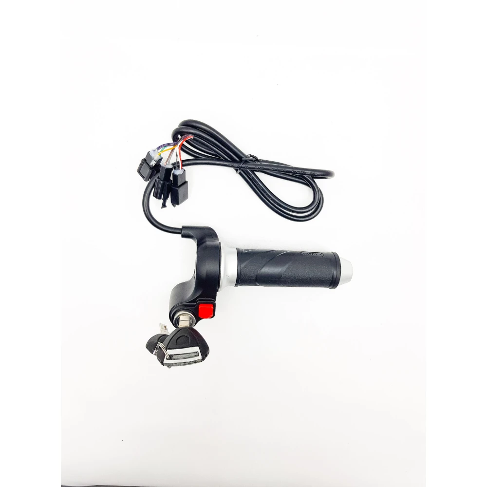 В комплекте: грипса (рукоятка), замок зажигания с ключем, кнопка переключения скорости, акселератор (газуля), шнур (кабель)