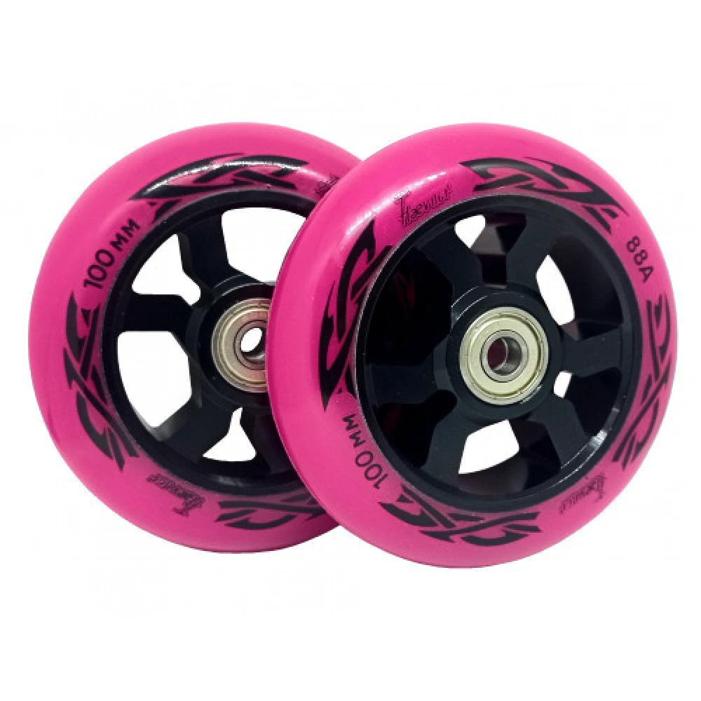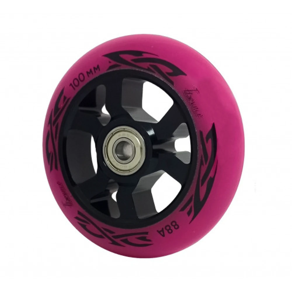 Колесо для трюкового самоката Haevner алюминиевое (100мм/ABEC 9) черно-розовый