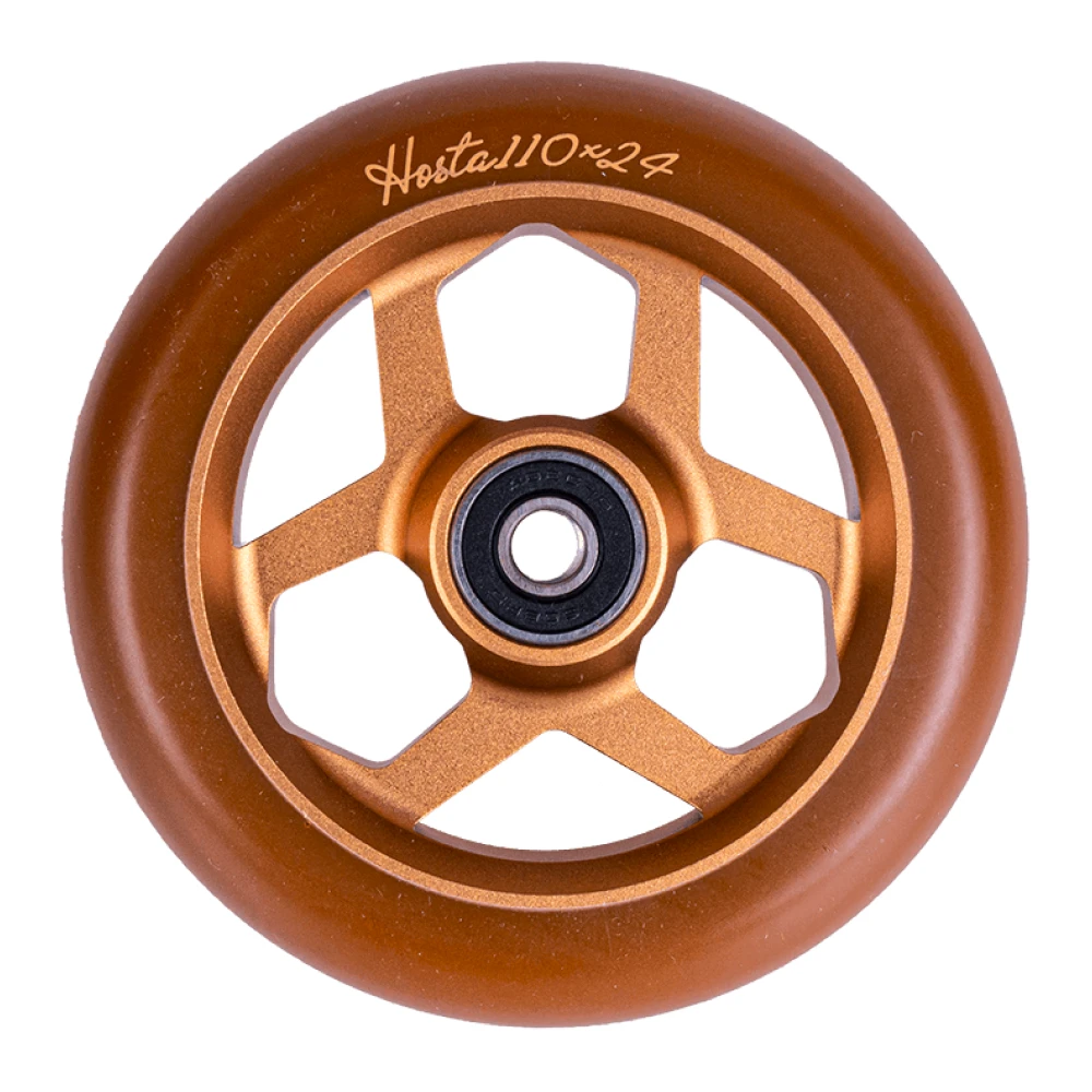 Колесо для трюкового самоката Tech Team 110*24мм Hosta в коричневатом оттенке выглядит необычно, понравилось трюкачам из РФ и СНГ. Лучшее предложение этого года. Качество материала изготовления позволяет выполнять рискованные трюки без переживаний за деформацию. Надежный алюминиевый диск с полиуретановым покрытием и инновационными подшипниками гарантируют отличный разгон и накат. С такими параметрами райдер может рассчитывать на лидерство, высококачественные суперпрыжки. Купить колеса по разумной цене, воспользоваться услугами профессиональной консультации поможет сотрудничество с нашим интернет-магазином.
